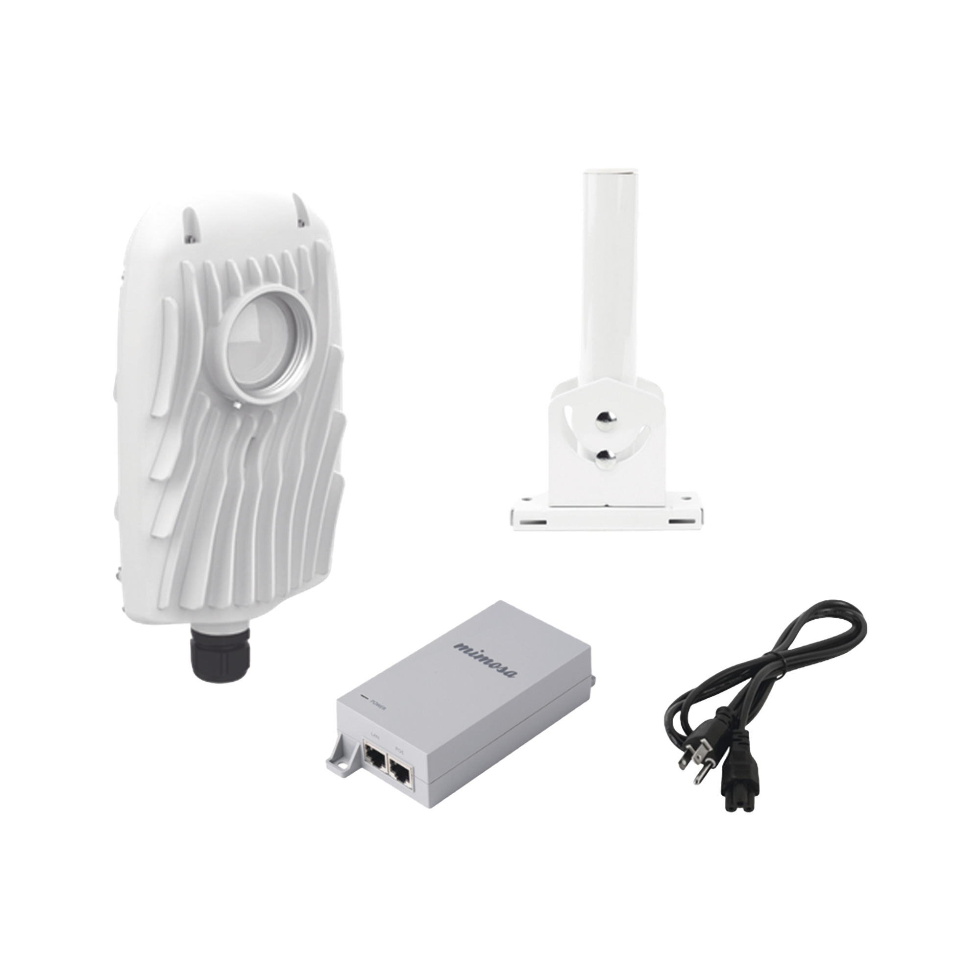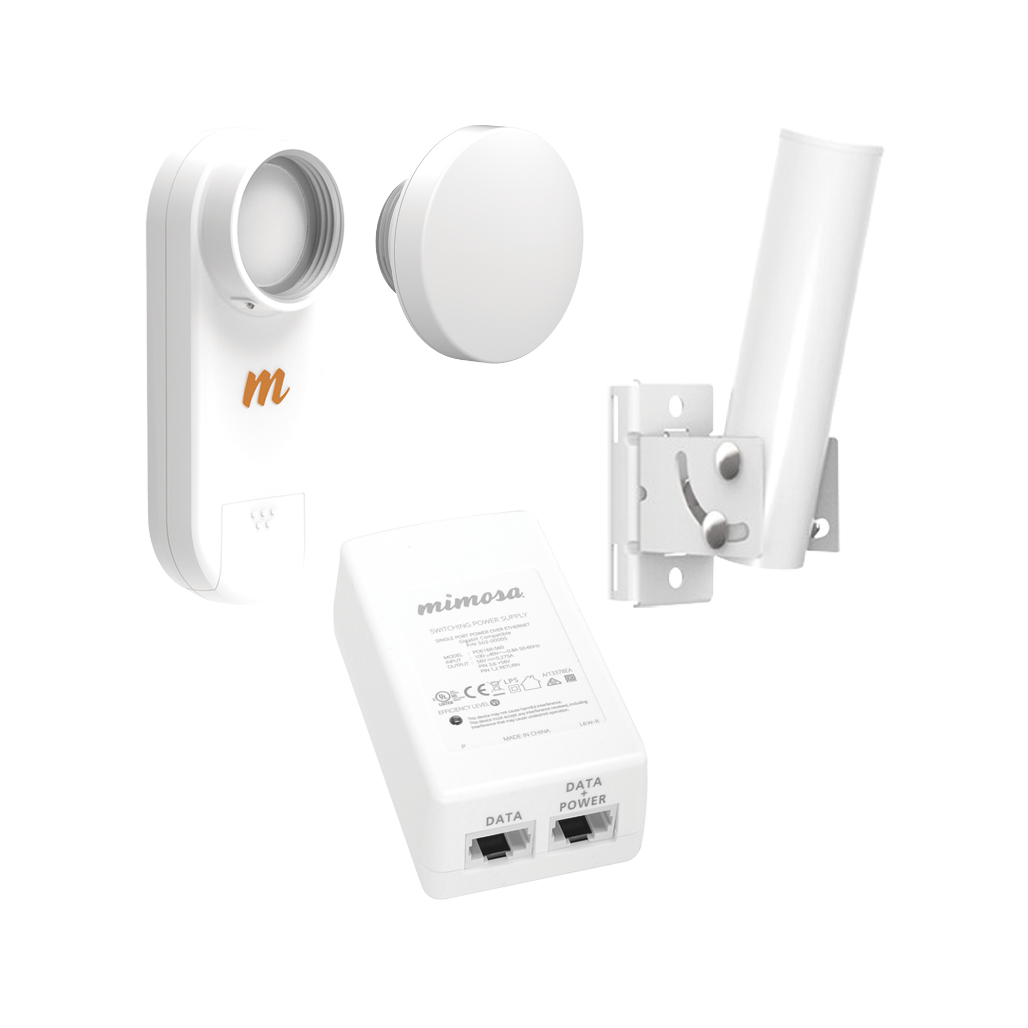 Especificaciones técnicas del kit 1 radio C5x hasta 700 Mbps de acuerdo a condiciones de los sitios y distancia del enlace. La capacidad en Mbps depende de la distancia del enlace. Rango de frecuencia de radio: 4.9 – 6.4 GHz. Incluye inyector POE24V, cable de alimentación PCC53 y un montaje UMOUNT. *1 año de garantía