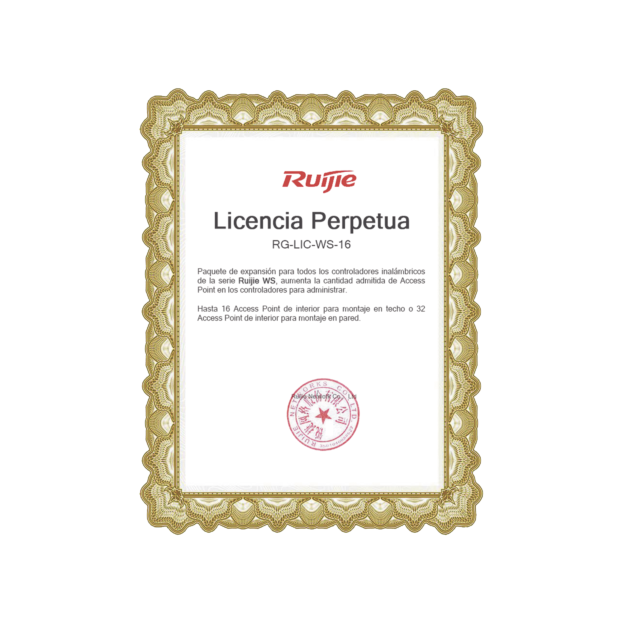 Licencia perpetua para controladores inalambricosRG-LIC-WS-16 Paquete de expansión para todos los controladores inalámbricos de la serie Ruijie WS, aumenta la cantidad admitida de Access Point en los controladores para administrar. Hasta 16 Access Point de interior para montaje en techo o 32 Access Point de interior para montaje en pared. Nota: […]